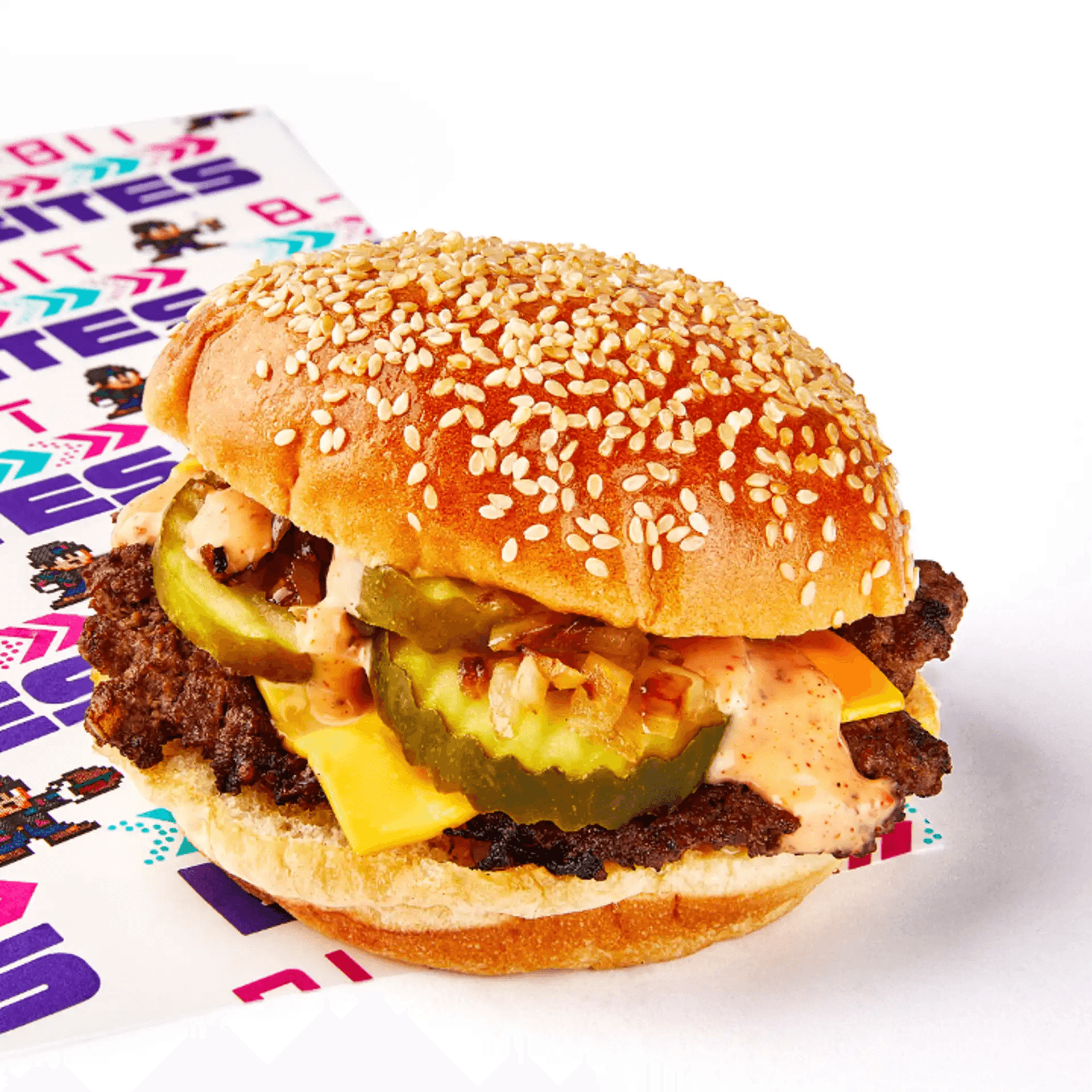Single, Double, or Impossible Patty with Lettuce, Tomato, Grilled Onion, Pickle & our signature 8-Bit Sauce.