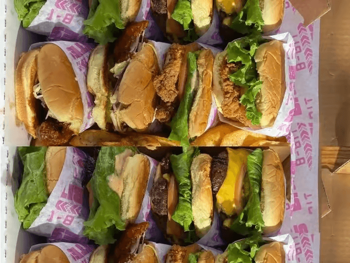 8 Smash Burgers, 8 Chicken Sandwiches and 6 Cans of Soda.